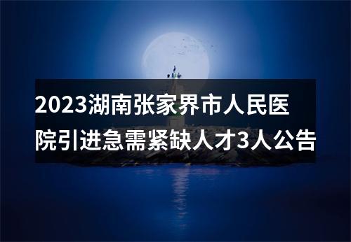 为加强张家界市人民医院人才队伍建设,经张家界市委卫健工委研究同意,张家界市人民医院面向社会公开引进急需紧缺人才3名。现将有关事项公告如下: